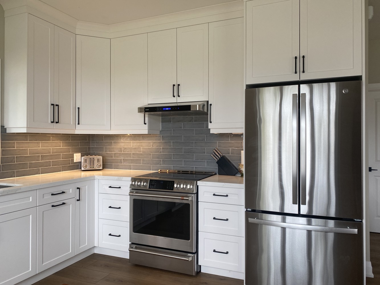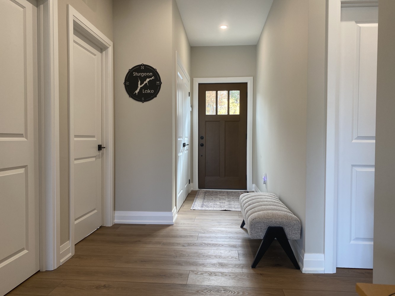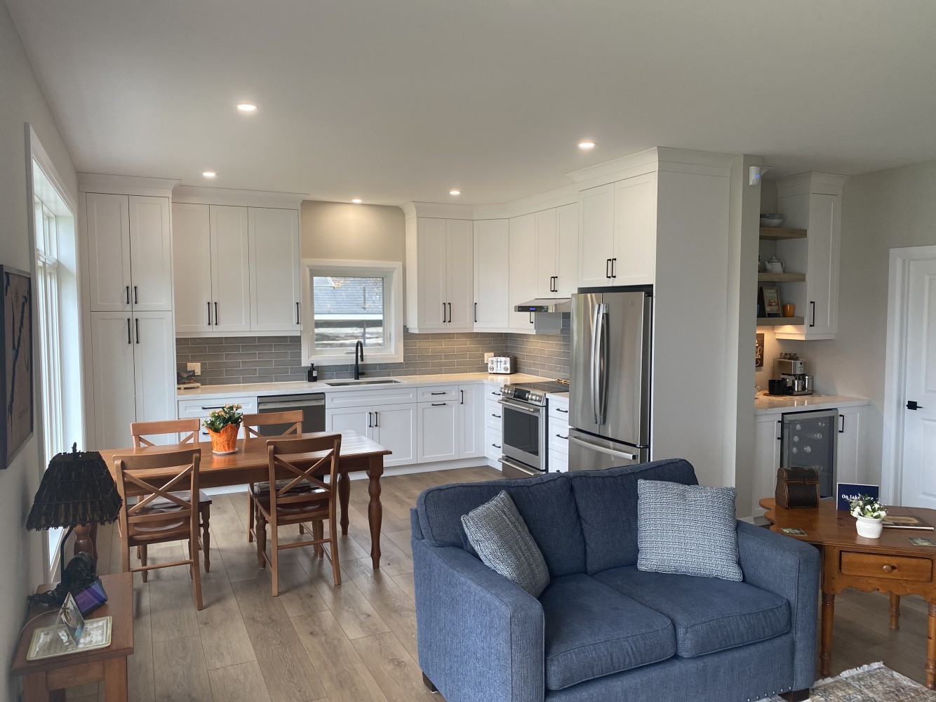 The Lakeside Cottage is a modern custom home built by Gregor Homes in the Barrie area, designed for relaxed year round living near the water. Clean lines, natural light, and an open concept layout create a calm and welcoming interior that feels both functional and comfortable. The kitchen, dining, and living areas flow seamlessly, making the space ideal for everyday use and casual entertaining.